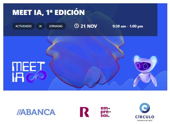 O Círculo de Empresarios de Galicia, en colaboración con R e Abanca, celebra a 1ª Edición de MEET_IA: Intelixencia Artificial, o futuro, un encontro deseñado para ofrecer unha visión integral e práctica do impacto da intelixencia artificial (IA) na contorna empresarial.